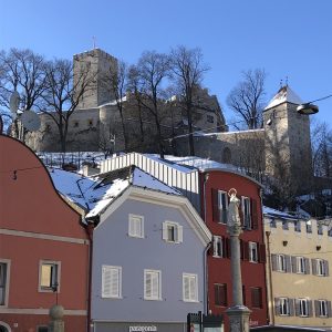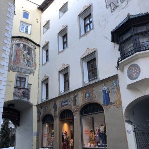Beh, la foto in primo piano della vetrina di prodotti alimentari è meravigliosa! Che voglia andare lì e sbizzarrimi negli assaggi! Brunico.. veramente una bella cittadina!