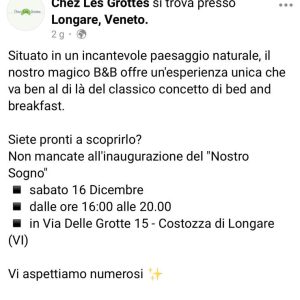 B&B speciale…..nelle grotte di Longare – Vicenza……inaugurazione il 16 dicembre